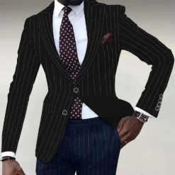 Men Business Casual Plaid Lapel Collar Two Button Chest Pocket Blazer