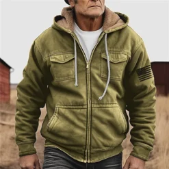 Men Fleece Vintage Western Antler Hunting Enthusiast Stand Collar Sweatshirt