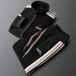 The tracksuit boasts premium corduroy fabric, ensuring warmth and softness. It includes a tailored jacket with a full zipper and matching pants, giving you a chic yet relaxed look. Whether you’re lounging at home or stepping out, this set is perfect for any occasion.