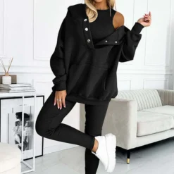 The women magnum 3 piece set includes a hooded sweater, a slim vest, and matching pants, making it an ideal choice for daily sports activities. Each piece is designed to offer comfort without compromising on style, perfect for the modern, active woman.
