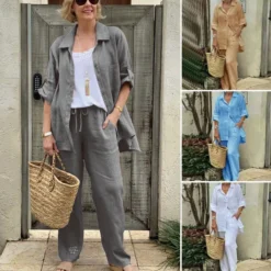The Women Magnum Two-Piece Cotton and Linen Casual Shirt Set beautifully combines comfort and contemporary style. Crafted from premium materials, this set ensures a breathable feel, making it ideal for warm weather outings.